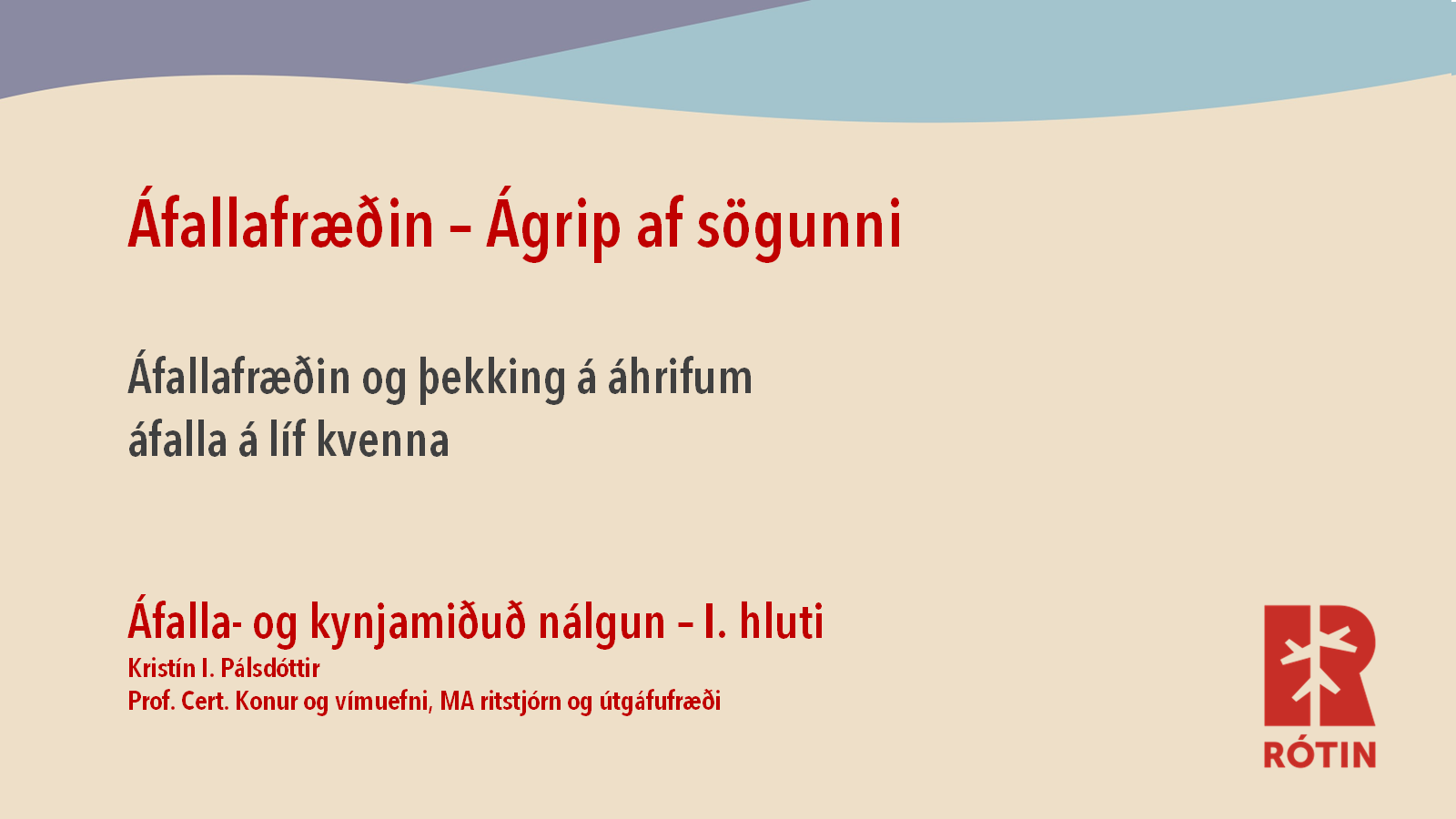 Kristín I. Pálsdóttir, fjallar um: I. hluti – Ágrip af sögu áfallafræðanna – 15:28 mín. II. hluti – ACE-rannsóknin og áfallaferlið – 13:14 mín. III. hluti – Áföll og kynjamismunur – 15:16 mín.