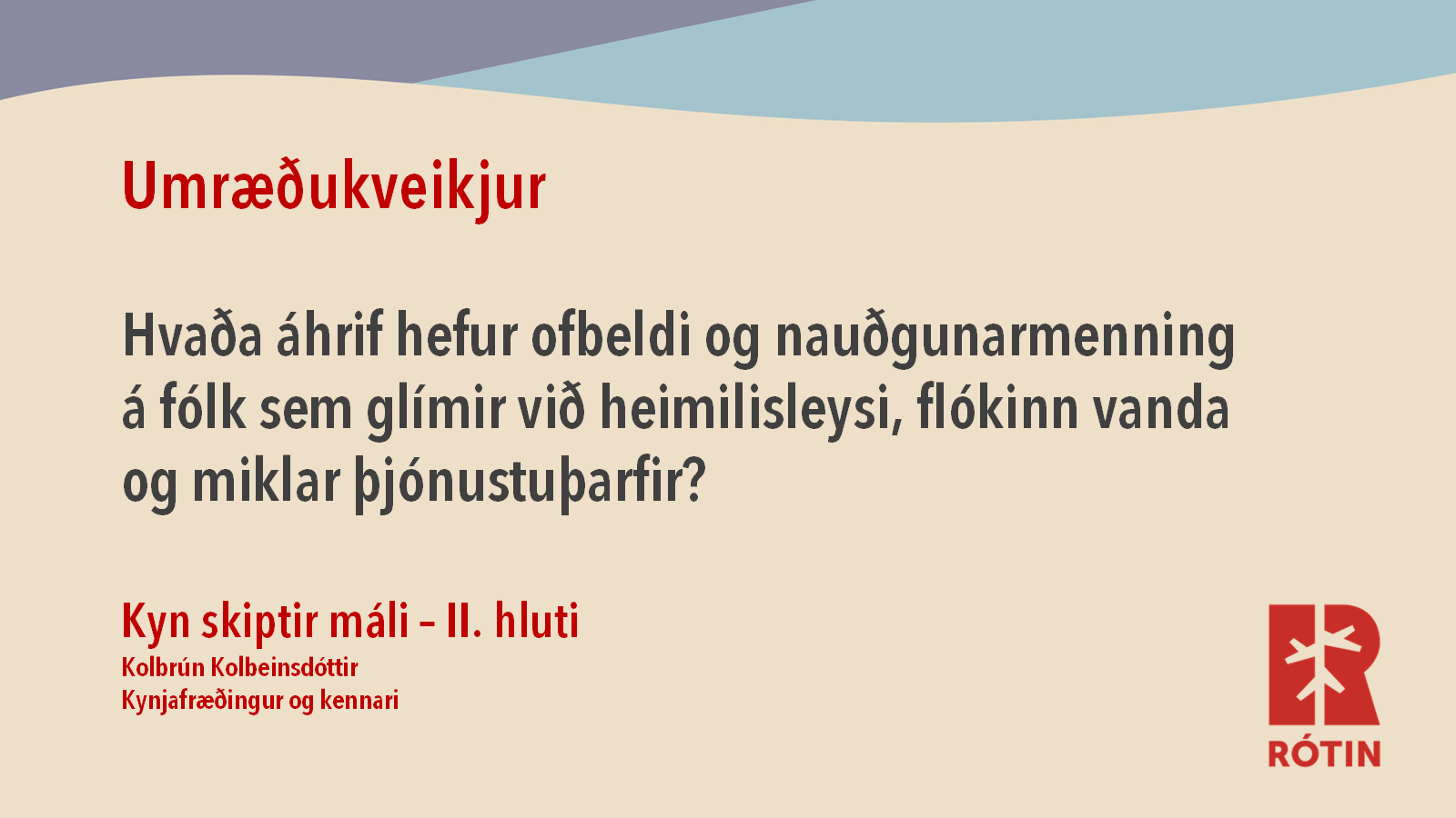 Fjallað um stöðu jafnréttismála á Íslandi og í alþjóðlegu samhengi. Alþjóðaefnahagsráðið / World Economic Forum, sex svið kynjakerfisins ásamt ofbeldi og nauðgunarmenningu.